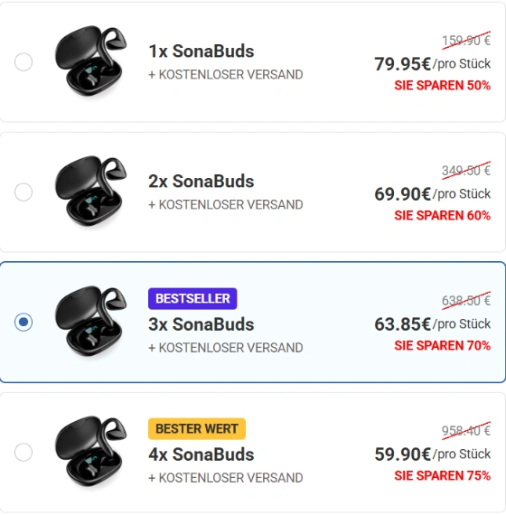 Aus diesem Grund empfehle ich dringend, SonaBuds ausschließlich über die offizielle Website zu erwerben. Dort erhalten Sie garantiert das Originalprodukt in geprüfter Qualität sowie die Sicherheit einer 30-Tage-Geld-zurück-Garantie.